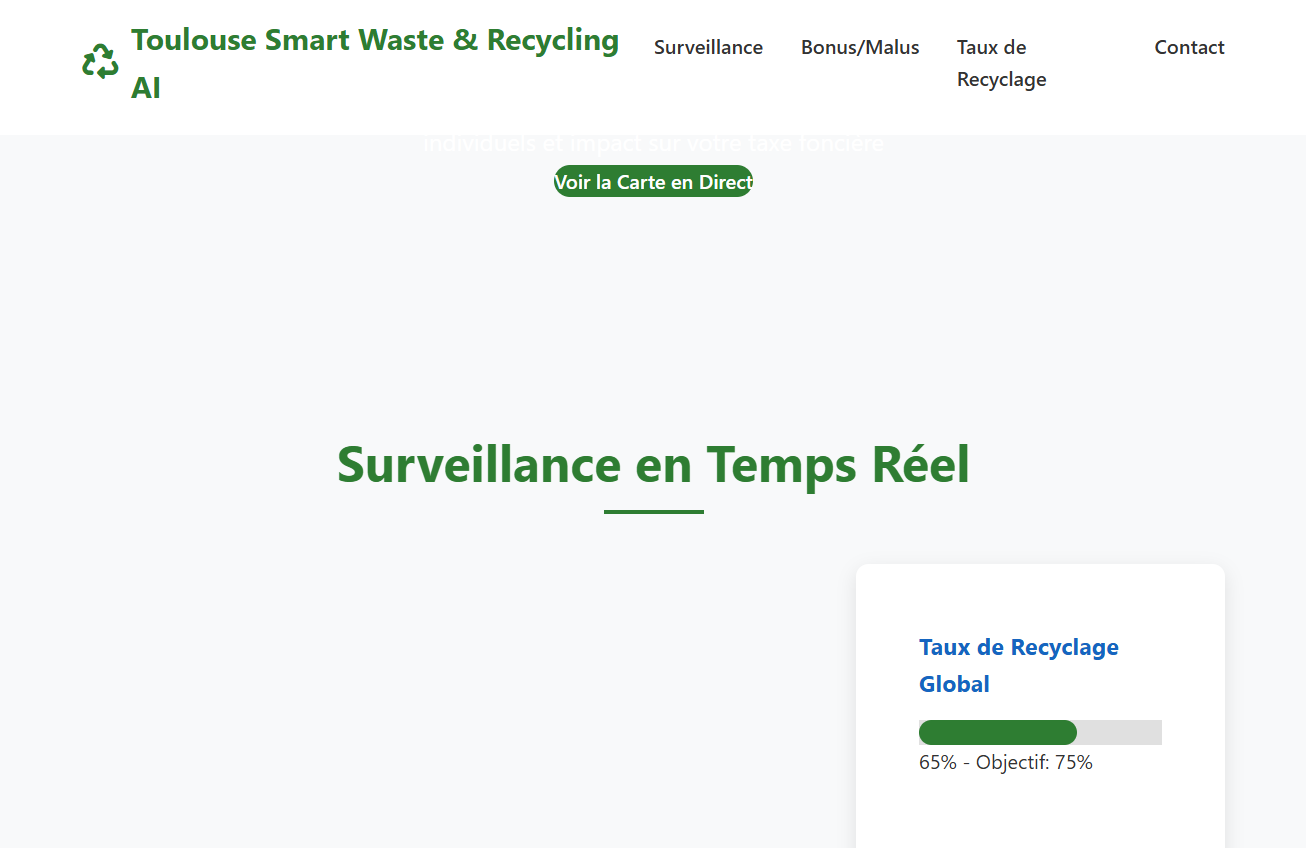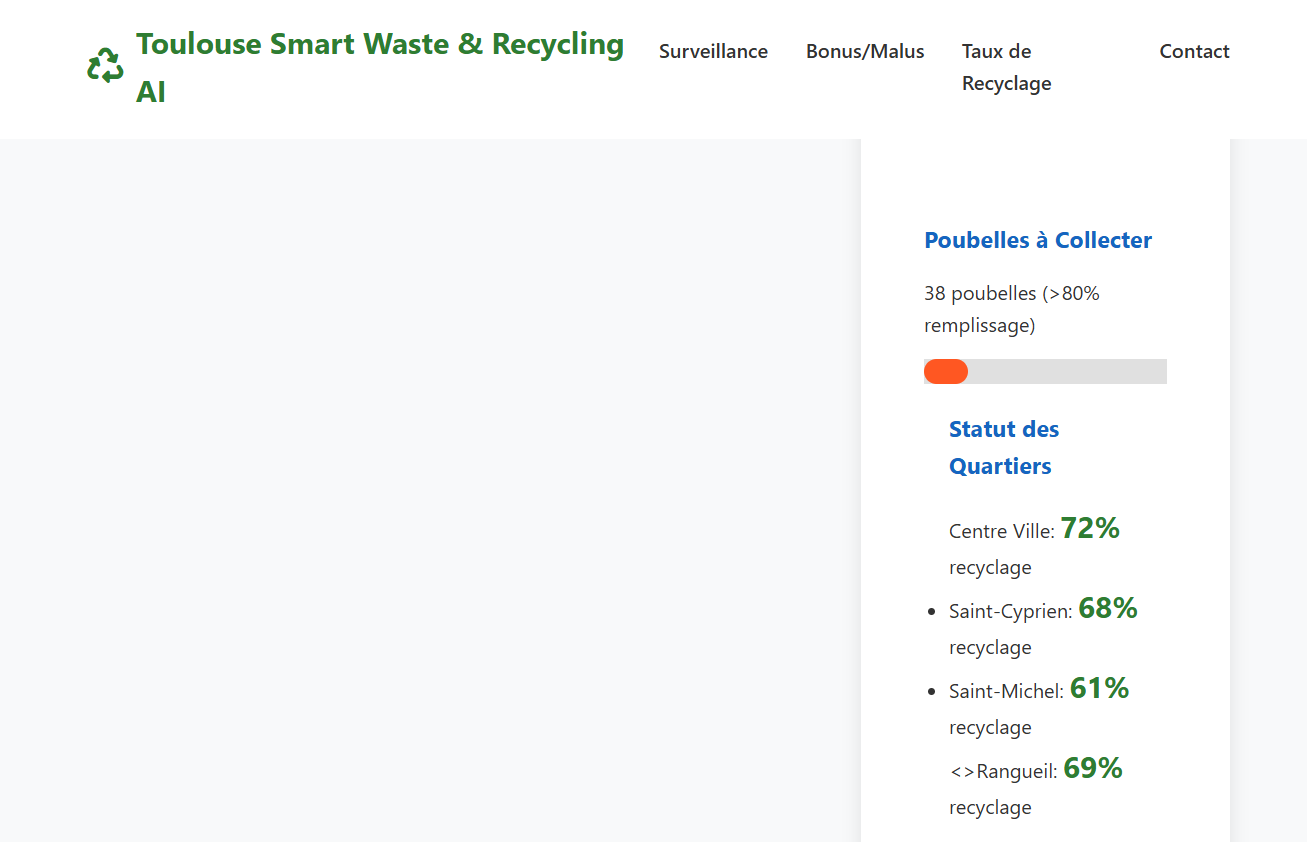 Problem: In Toulouse, waste management costs €25 million per year, with only 65% recycling rate and inefficient collection routes generating 500 tonnes of unnecessary CO₂.